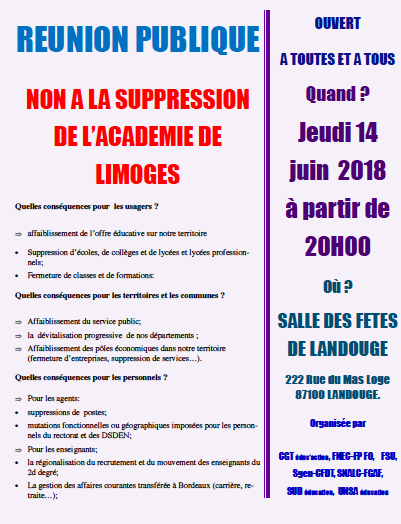 Pétition interfédérale CGT éduc’action, FNEC-FP FO, FSU, Sgen-CFDT, SNALC-FGAF, SUD éducation, UNSA éducation adressée à Monsieur le Ministre de l’Éducation Nationale, pour le maintien de l’académie de Limoges.